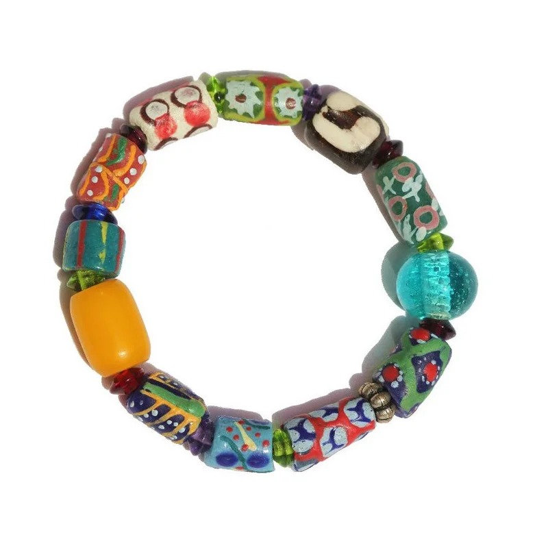 Barefoot and beautiful! These elastic bracelets are changing lives in Kenya. Made from hand-painted recycled glass. $1 from every bracelet purchased goes to educate the children of Acacia's employees and suppliers in Kenya.