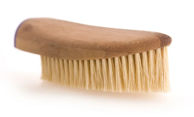 This scrub brush is unlike any other. It stands on end to dry faster, thus preventing bacteria growth. The the combination of all-natural and recycled plastic bristles absorb and hold soap and provide tough scrubbing action. The ergonomic bamboo handle is coated with natural oils.
