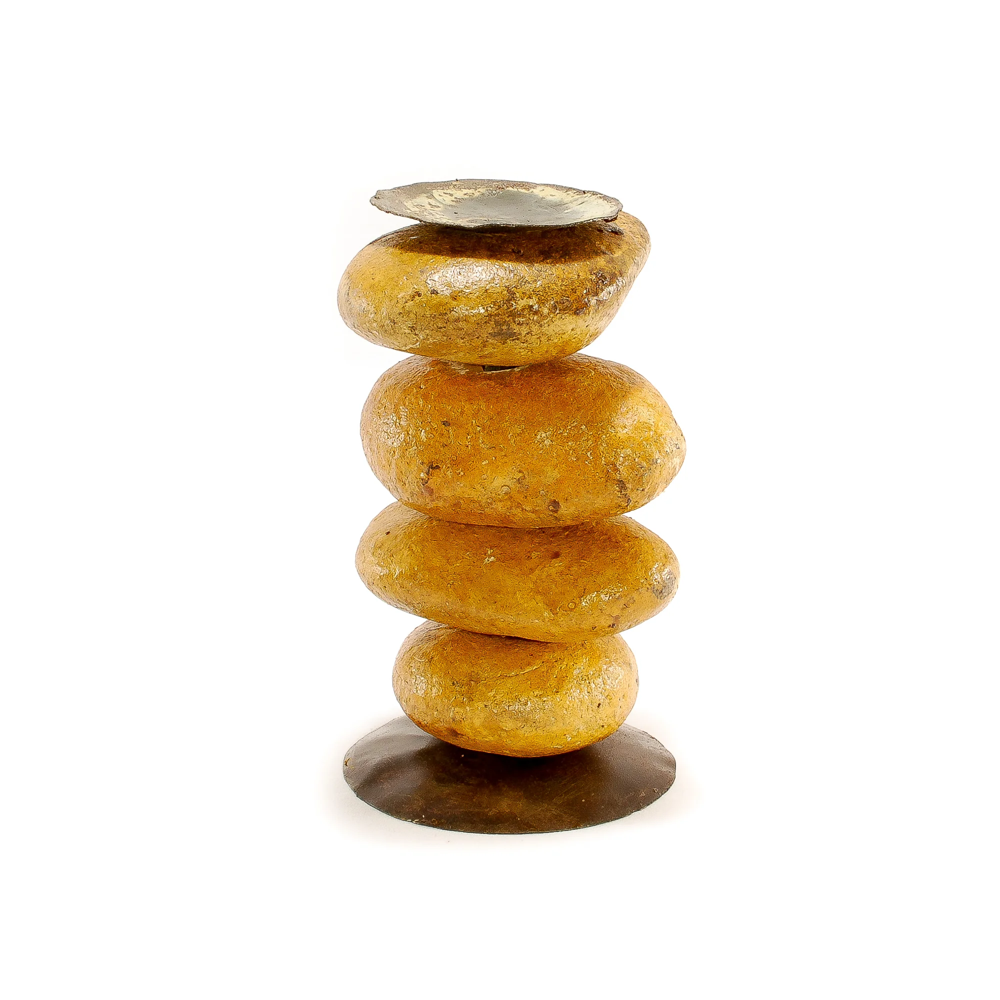 Rocks never looked so good! Handpicked for their shape and characteristics, rocks are fashioned with recycled iron to create this great-looking candle holder. Approx. 10" H.