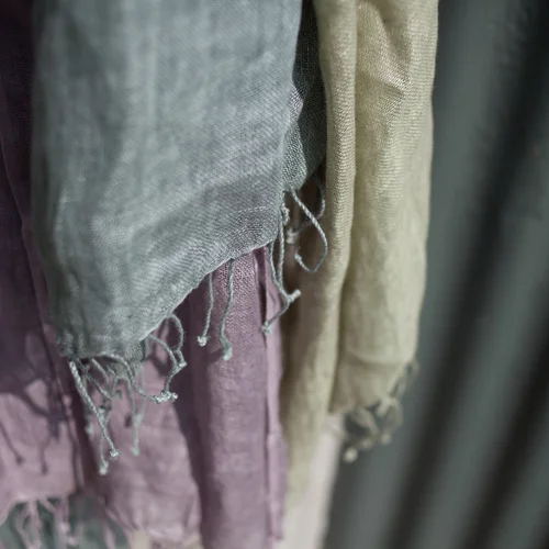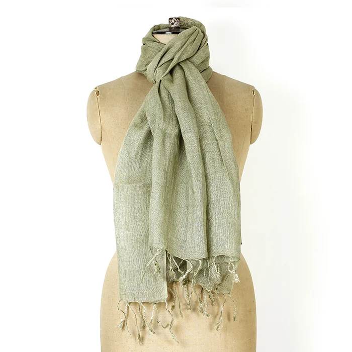 We usually don't think of wearing scarves in the summertime, however, times are changing along with fashion. Scarves aren't just a winter accessory, especially when they are lightweight linen. Linen, a fabric which has been around since 8000 BC, is known for its exceptional coolness and freshness in hot weather. Linen scarves add a touch of feminine charm to any outfit. Even when worn wrinkled right out of the dryer they add a touch of elegance.