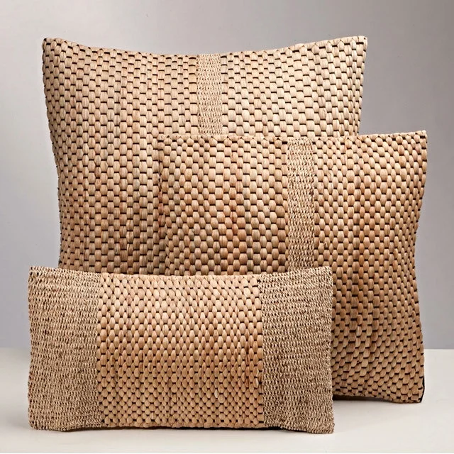 What is water hyacinth? Water hyacinth is a free-floating water reed that originated in South America but has since been introduced worldwide. It is one of the fastest growing plants known and can completely cover a body of water if not controlled. It has begun to clog up some of the waterways in Thailand, so a very clever Thai designer figured out how to use the fibrous stalks of this plant to create beautiful home accessories and pillows. She has turned a weed into contemporary home products, using traditional Thai craftsmanship and providing additional income to the villagers. A real winner all around -- sustainable, fair trade and gorgeous.