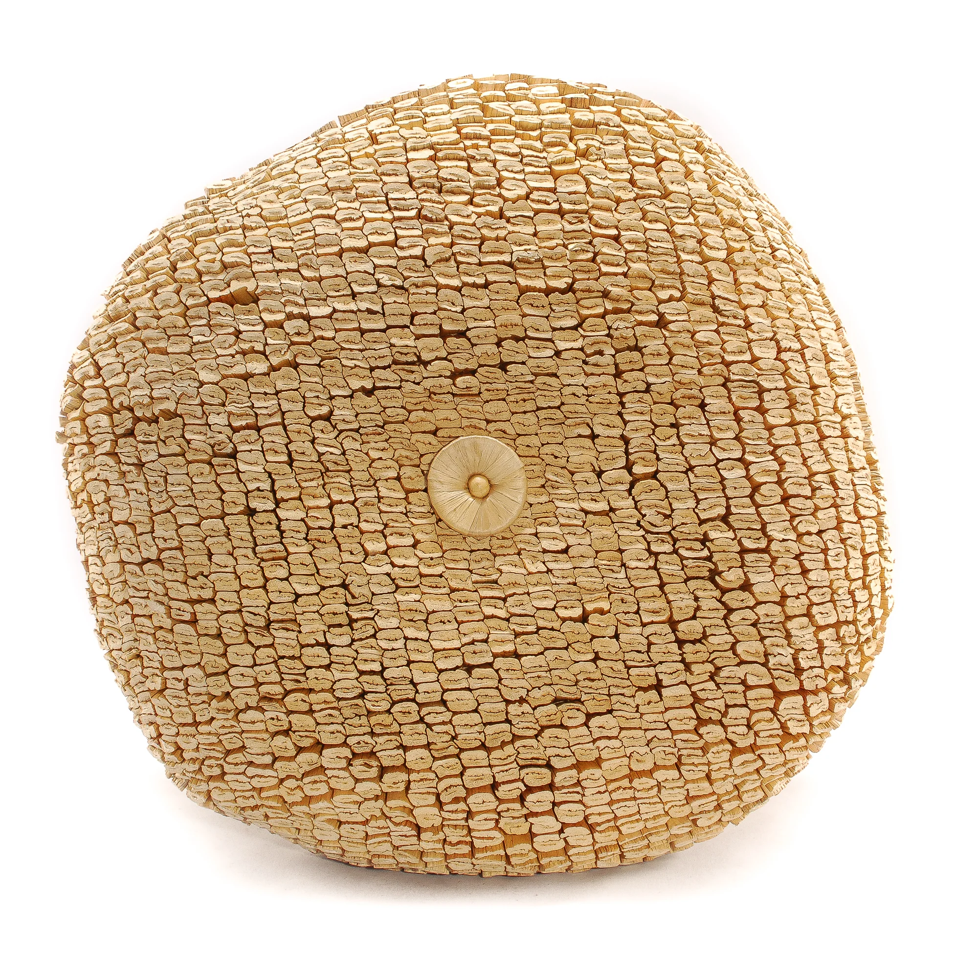 Beautiful, rippled and round -- a great accent on any sofa. These unique accent pillows are artistically hand crafted from water hyacinth fiber by village artisans. Backed with 100% natural hemp cloth and filled with natural kapok. 19" across.