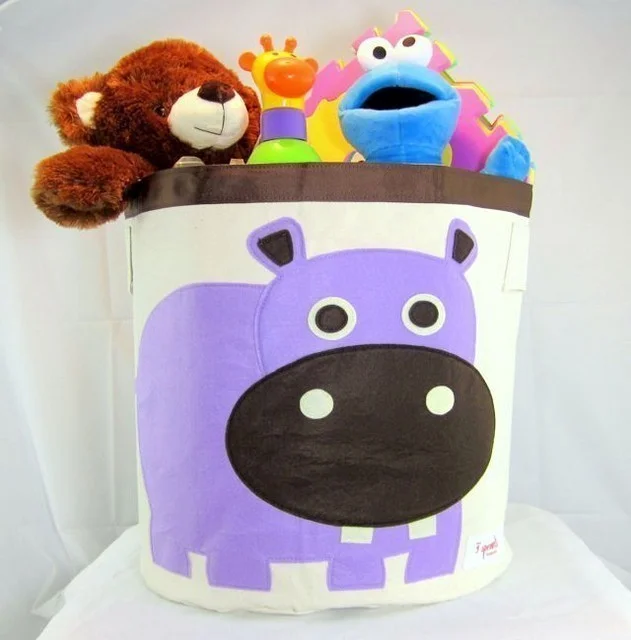 Our playful organic canvas storage bin is tough enough to hold tons of stuff and playful enough to complement any playroom, bedroom and child's imagination. Decorative animals are 100% eco-spun felt (made from recycled water bottles). Storage bin is natural color canvas with colored trim. 17"H x 20" diameter. Spot clean. Toys not included.